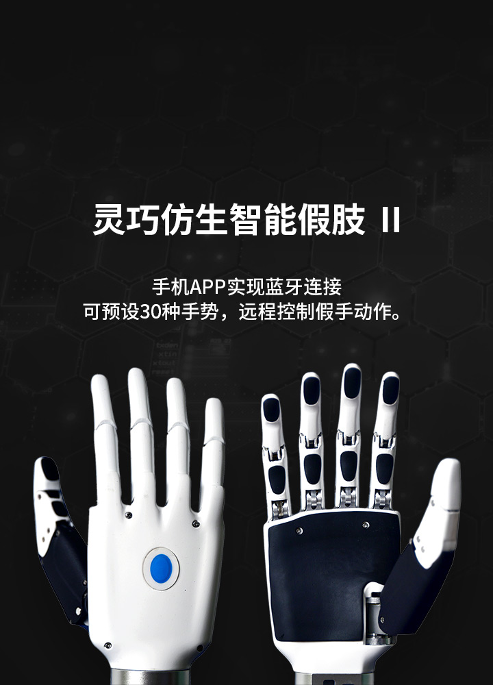 每個(gè)手指單獨(dú)驅(qū)動(dòng),動(dòng)作靈活精準(zhǔn);手指關(guān)節(jié)彈力緩沖裝置,手感舒適,防碰撞;掌部和手指表面的耐磨材料具有防滑功能,抓握可靠;采用航空材料,重量輕,牢固美觀(guān);每個(gè)手指驅(qū)動(dòng)集成壓力、位置、速度等傳感器及反饋控制;拇指具有3個(gè)自由度;多模式控制,藍(lán)牙4.0連接。